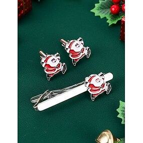Pánská vánoční sada manžetových knoflíčků a kravatové spony s motivem Santy – slitina, slavnostní design pro vánoční večírky a formální příležitosti