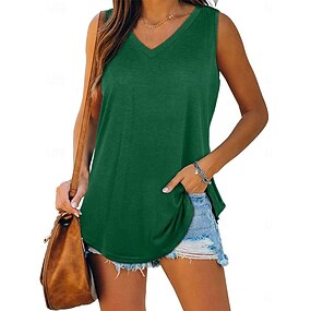 Dámské Halenka Bez vzoru Aktivní Vinobraní Bez rukávů Do V Dlouhé topy Denní Dovolená Jdeme ven Vodní modrá Černá Bílá Žlutá Světle zelená Léto Jaro
