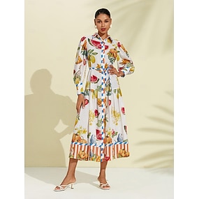 ovocné midi košilové šaty s potiskem