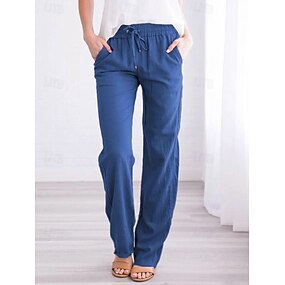 Dámské Imitace bavlny a lnu Letní kalhoty Kalhoty Běžné Denní Plná délka Přírodní Bez vzoru Šňůrky Boční kapsy Prodyšnost Pohodlné Neelastické Jdeme ven Víkend Vodní modrá Černá Bílá Bordó Jaro léto