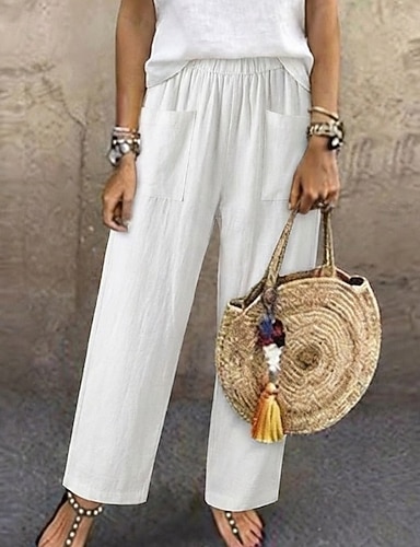 Dámské Bavlněné plátěné kalhoty Letní kalhoty Oříznuté kalhoty Plážové kalhoty prázdniny Klasické Po kotníky Středně vysoký pas Kapsy Vydutý Pružný design se stahovací šňůrkou Pohodlné Prodyšnost