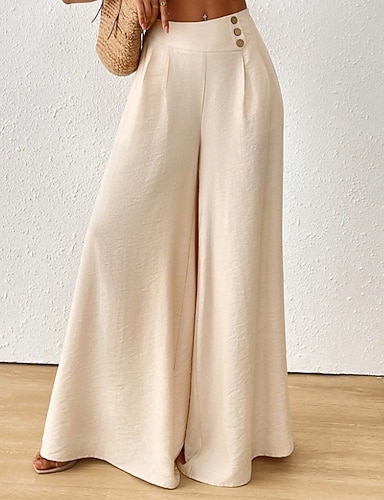 Dámské Široké nohavice Kalhoty Kalhoty Palazzo Módní Šik ven Plná délka Vysoký pas Bez vzoru Kapsy Prodyšnost Pohodlné ulice Denní nošení Jdeme ven Bílá Jaro Podzim Běžný