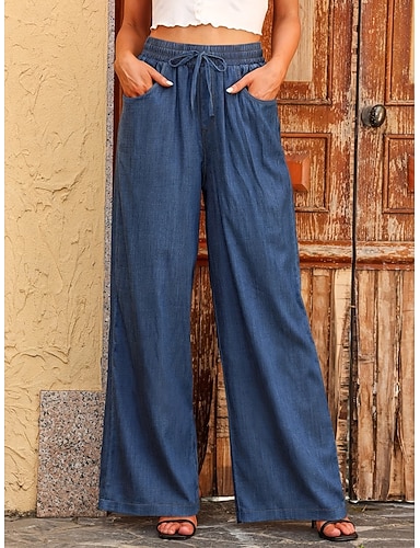 Dámské Široké nohavice Kalhoty chinos Rovné Elegantní prázdniny Vinobraní Plná délka Středně vysoký pas Bez vzoru Slátanina Elastický pas Pohodlný Prodyšné Neelastické Denní Domů Venkovní Nebesk