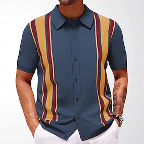Pánské Košile Košile pro volný čas Košile na knoflíky Námořnická modř Hnědá Krátký rukáv Vertikální pásky Košilový límec Ležérní Denní Oblečení Elegantní Módní Na běžné nošení