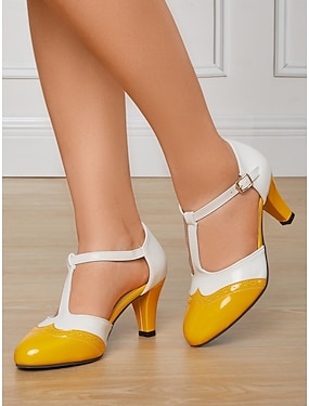 dámské vintage podpatky s t-páskem mary jane z padesátých let – dvoubarevné polobotky na nízkém podpatku brogue pro retro večírky, kancelářské oblečení a zvláštní příležitosti