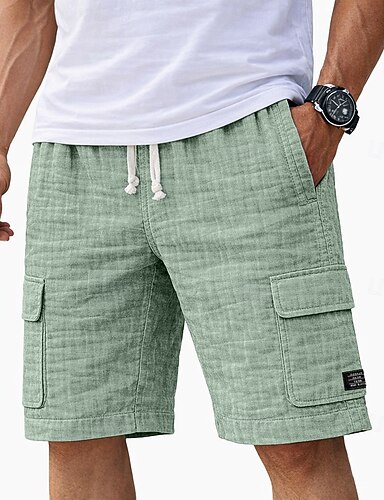 Pánské Kraťasy Letní šortky Plážové šortky Neformální šortky Šňůrky Elastický pas Pevná barva S texturou Pohodlné Krátký Denní Venkovní Streetwear Módní Retro Vodní modrá Černá Neelastické