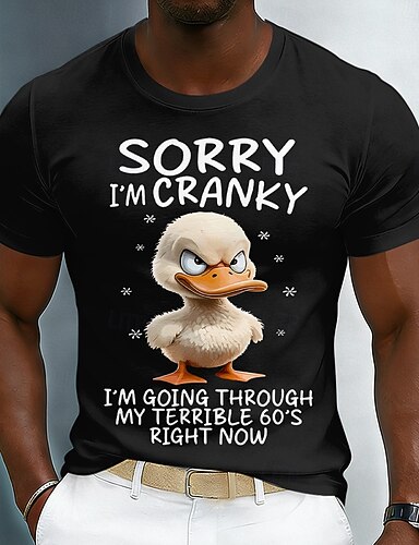 Promiňte, jsem mrzutý, procházím si svými hroznými šedesátkami. Vtipná naštvaná kachna, pánský dárek k 60. narozeninám. Sarkastický, mrzutý stařík s potiskem. Tričko s kulatým výstřihem a krátkým