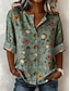Dámské Košile Květinový Grafika Vinobraní stylové Dlouhý rukáv Do V Běžné topy Ležérní Denní Dovolená Žlutá + růžová Khaki + bílá + šedá Trávová zelená Světle modrá Léto Jaro