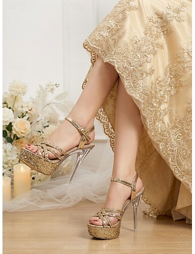 Dámské zlaté třpytivé páskové sandály na vysokém podpatku, elegantní společenské boty s otevřenou špičkou pro svatební hosty, zahradní svatba &formální události