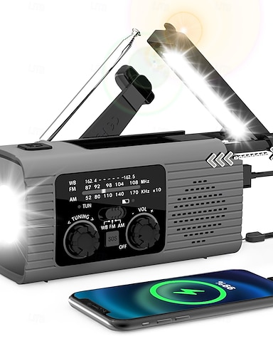 Nouzové rádio 4000 mAh solární ruční klika AM/FM/NOAA přenosné meteorologické rádio s nabíječkou telefonu, LED svítilnou, lampičkou na čtení, SOS alarmem, konektorem pro sluchátka pro vnitřní a
