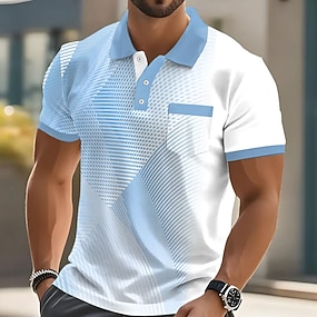 Pánské Geometrické tvary Çizgi Waffle Polo košile Krátký rukáv Polo tričko Košile s límečkem Obchodní příležitostné Obchod Škola Oblečení na atletiku 3D tisk Knoflíky Léto Vodní modrá Rubínov
