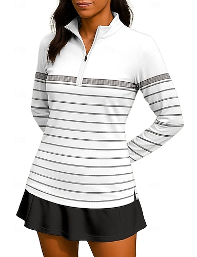 Dámské Geometrický S proužky Tričko Sportovní košile Turistická polokošile Tenisové tričko Dlouhý rukáv Zip Květinový UPF50+ Odolná proti UV záření Vysoká pružnost Odvod vlhkosti Prodyšné Tenis Golf