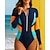 Dámské Ochrana proti vyrážce Plavky Jednodílné díly Blokování barev Zapni Ochrana proti UV záření Elastický Dlouhý rukáv Plavky Surfování Plážové Plavání Léto