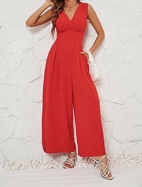 Dámské Kombinéza Aktivní Pevná barva Bez rukávů Široké nohavice Do V Kapsy Denní Dovolená Běžný Černá Armádní zelená Rubínově červená Léto