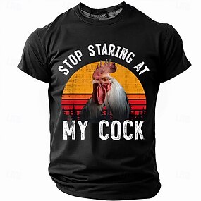 Pánské tričko s grafikou - vtipné pun černé kuře s krátkým rukávem - Přestaň zírat na mé kohouty