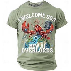 Pánské tričko s otevřenými drápy, humry, králem, vítám naše nové AI Overlords, zeměkoule, AI agent, tech, geeky programátor, s potiskem, regular střih, ležérní, denní nošení, značkové oblečení,