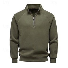 Pánské Mikina Svetrová mikina s kapucí Čtvrtletní mikina na zip Žebrovaný úplet Meruňková Černá Bílá Armádní zelená Stojáček Poloviční zip Bez vzoru Slátanina S texturou Ležérní Denní Sporty a outdoor