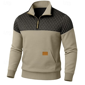 Pánské Mikina Waffle mikina Svetr Čtvrtletní mikina na zip Vodní modrá Fialová Armádní zelená Khaki Světle šedá Klopa Bez vzoru Slátanina Barevné bloky S texturou Ležérní Denní Sporty a outdoor