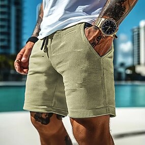 Pánské Vafle šortky Kraťasy Letní šortky Neformální šortky Kapsy Šňůrky Elastický pas Bez vzoru Pohodlné Prodyšné Krátký Venkovní Dovolená Sport Na běžné nošení Černá Bílá