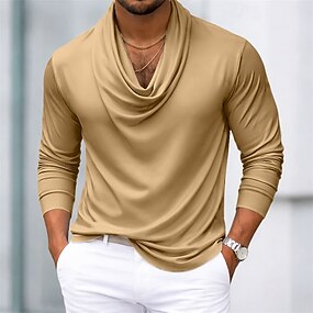 Pánské Košile Hedvábí jako Saténová košile Košile pro volný čas Bez vzoru Ležérní Denní Černá Bílá Královská modř Zlatá Dlouhý rukáv Nabíraný krk Jaro Jaro & podzim Oblečení Nabírané šaty