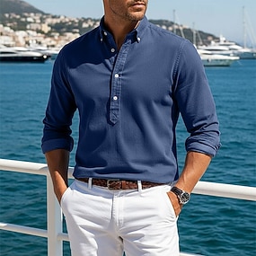 Pánské Košile Košile s knoflíkem Košile pro volný čas Bez vzoru Ležérní Venkovní Světle modrá Černá Bílá Námořnická modř Dlouhý rukáv Límeček s knoflíkem Léto Jaro Oblečení Knoflíky