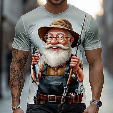 Pánské Starý muž Rybářská Tričko Krátký rukáv tričko 3D tisk Tričkový Košile Přehnaný Designové Denní Klub Párty Bílá Šedá Léto Jaro Celý rok Oblečení S M L XL XXL XXXL