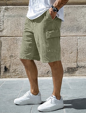 Pánské Kraťasy Lněné šortky Letní šortky Plážové šortky Šňůrky Multi kapsa Bez vzoru Pohodlné Yumuşak Délka kolen Ležérní Denní Šik ven Klasický styl Bílá Armádní zelená