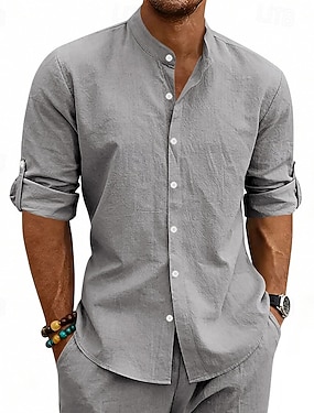 Pánské Lněná košile Popover košile Košile pro volný čas Plážová košile Košile s páskovým límečkem Bez vzoru Ležérní Plážové Černá Bílá Světlá růžová Modrá Dlouhý rukáv Stojáčkový límec Jaro léto Léto