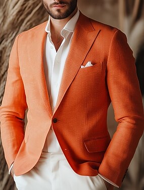 Pánské Plátěný sako Sportovní kabát Zářezový límec Módní Na běžné nošení Jednobarevné Žlutá Oranžová Béžová Standardní uložení Jednořadé s jedním knoflíkem