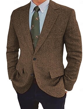 Pánské Tweed Blazer Zářezový límec Módní Klasické Na běžné nošení Jednobarevné Smrčkový steh Blazer Hnědá Tmavomodrá Standardní uložení Single Breasted Dvě tlačítka