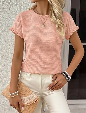 Dámské Halenka Poutko Knoflíky Pevná barva stylové Základní Na běžné nošení Krátký rukáv Tričkový Běžné topy Denní Světlá růžová Léto Jaro