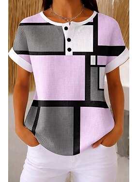 Dámské Vaflové tričko Texturované pletené topy Tričko Barevné bloky Tisk Tlačítko Přední Grafika Geometrický Abstraktní Vinobraní stylové Klasické Krátký rukáv Tričkový Henley Dlouhé topy Ležérn