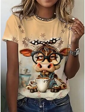 Dámské Tričko Tisk Grafika Zvíře Vinobraní stylové Klasické Krátký rukáv Tričkový Kulatý Běžné topy Denní Víkend Vodní modrá Světlá růžová Trávová zelená Léto Jaro