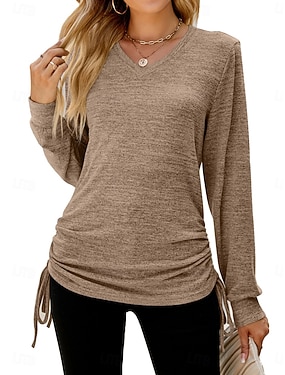 Dámské Halenka Nabírané šaty Pevná barva stylové Na běžné nošení Dlouhý rukáv Tričkový Běžné topy Denní Černá Rubínově červená Fialová Hnědá Béžová Léto Jaro Podzim