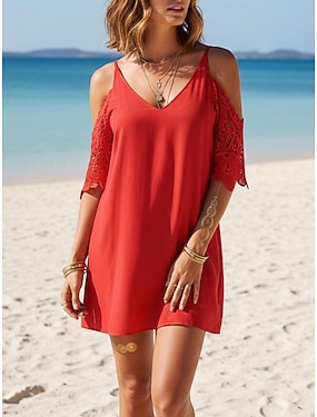 Dámské Mini šaty Bílé šaty Krajkové šaty Volnočasové šaty Letní šaty Módní Venkovní Dovolená Rande Běžný Bez vzoru Bez rukávů Špagetová ramínka Bílá Léto Jaro