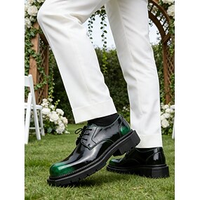 Pánské černo-zelené elegantní boty z lakované imitace kůže, moderní módní design, stylová obuv na večírky, formální setkání a svatby