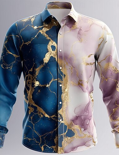 Pánské Spád Mramor Abstraktní tekuté umění Košile Košile na knoflíky Dlouhý rukáv Móda pro volný čas Venkovní Denní Streetwear Jaro Podzim Přehnutý 3D tisk Len jako košile Vodní modrá Fialová Zlat