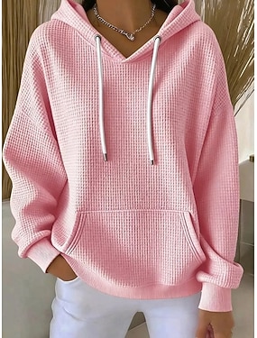 Dámské Mikina s kapucí s kapucí Kapsy Bez vzoru Na běžné nošení Dlouhý rukáv Kapuce Běžné topy Vodní modrá Černá Bílá Světlá růžová Fuchsiová Jaro Podzim Zima