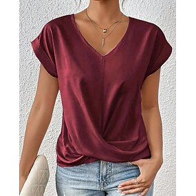 Dámské Tričko Pevná barva Klasické Na běžné nošení Krátký rukáv Do V Běžné topy Denní Jdeme ven Víkend Černá Bílá Světlá růžová Fialová Námořnická modř Léto Jaro