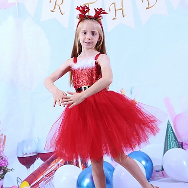 Děti Málo Dívčí Šaty Jednobarevné Každý Vánoční vzor Áčkové šaty Vánoční dárky Narozeniny Výkon Nabírané šaty Síťka Rubínově červená Nad kolena Bez rukávů Kostým Roztomilý Šaty Podzim Léto Běžný 4-12