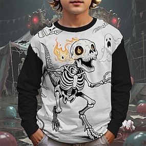 předvečer Všech svatých Chlapecké 3D Komiks Lebky Dinosaurus Tričko Košilky Dlouhý rukáv Jaro Podzim Módní Základní Děti 4-12 let Tričkový Venkovní Ležérní Denní Běžný