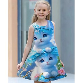 Girls ' 3D Kočka Šaty Bez rukávů Léto Jaro Dovolená Denní Princeznovské Krásná Sladký Děti 4-12 let Volnočasové šaty Áčkové šaty Délka ke kolenům Běžný