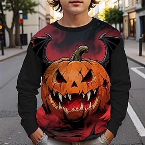 předvečer Všech svatých Chlapecké 3D Dýně Tričko Košilky Dlouhý rukáv Jaro Podzim Módní Základní Děti 4-12 let Tričkový Venkovní Ležérní Denní Běžný