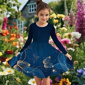 Girls ' 3D Grafika Motýl Šaty Dlouhý rukáv Léto Jaro Dovolená Denní Princeznovské Krásná Sladký Děti 4-12 let Volnočasové šaty Áčkové šaty Délka ke kolenům Běžný