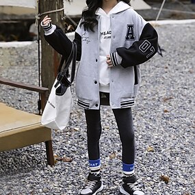 dětský dívčí kabát dlouhý rukáv šedé písmeno podzim zima aktivní ulice 4-13 let