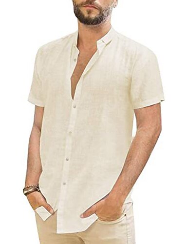 Pánské Letní košile Košile pro volný čas Plážová košile Bavlněná košile Pokrčí rameny Meruňková Krátký rukáv Plná / Jednobarevná Kapuce Dovolená Havajské Oblečení Módní Na běžné nošení Pohodlné