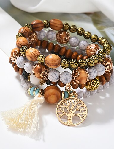 Dámské Korálkový náramek Klasické Náramky Vícevrstvé Promoce Móda Vintage téma Strom života Elegantní Módní Přizpůsobeno Střapec Cikánské Slitina Náramek šperky Bílá Pro Dar Denní Dovolená Rande