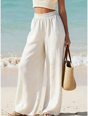 Dámské Bavlněné plátěné kalhoty Široké nohavice Kalhoty chinos Letní kalhoty prázdniny Šik ven Základní Plná délka Středně vysoký pas Bez vzoru Kapsy Elastický pas Pohodlné Neelastické Denní Venkovn