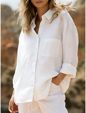 Dámské Košile Tlačítko nahoru Halenka Imitace bavlny a lnu Knoflíky Bez vzoru Moderní Na běžné nošení Dlouhý rukáv Košilový límec Běžné topy Denní Dovolená Jdeme ven Černá Bílá Žlutá Světlá růžová
