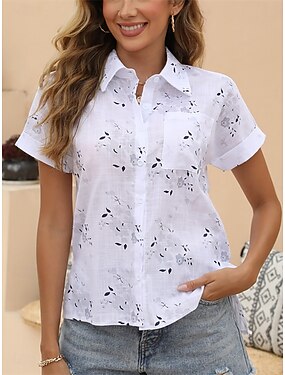 Dámské Košile Halenka Imitace bavlny a lnu Slátanina Knoflíky Tisk Květinový Grafika Vinobraní stylové Klasické Krátký rukáv Košilový límec Běžné topy Denní Dovolená Jdeme ven Bílá Žlutá Světle modrá